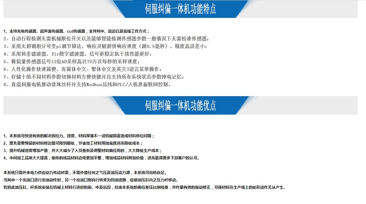 糾偏一體機,精度高達0.05mm,內(nèi)置電源器,安裝更方便,接電只需直接接入220V即可使用。