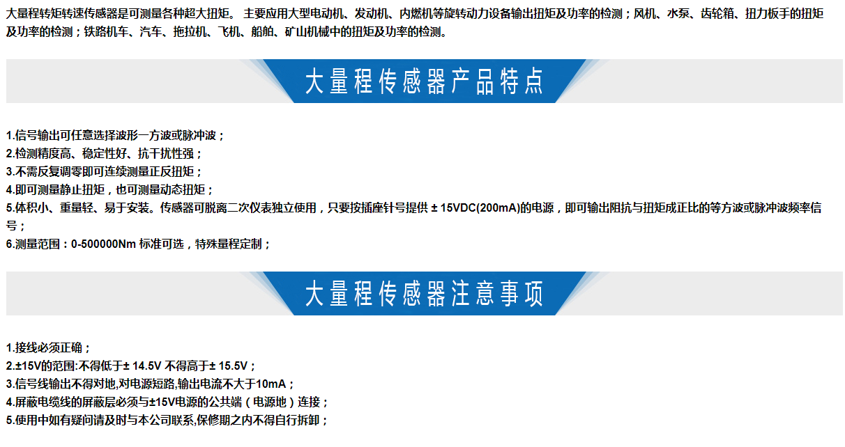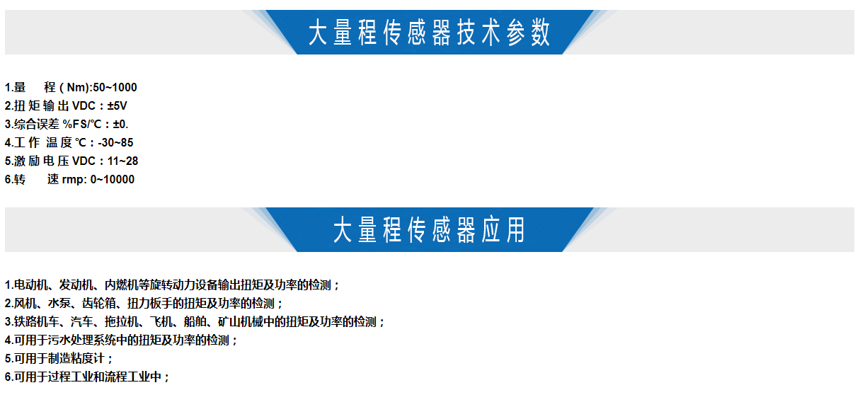 大量程轉(zhuǎn)矩轉(zhuǎn)速傳感器是可測量各種超大扭矩。 主要應(yīng)用大型電動(dòng)機(jī)、發(fā)動(dòng)機(jī)、內(nèi)燃機(jī)等旋轉(zhuǎn)動(dòng)力設(shè)備輸出扭矩及功率的檢測;風(fēng)機(jī)、水泵、齒輪箱、扭力板手的扭矩及功率的檢測;鐵路機(jī)車、汽車、拖拉機(jī)、飛機(jī)、船舶、礦山機(jī)械中的扭矩及功率的檢測。